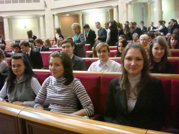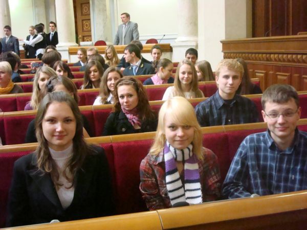 До кінця зустрічі юнаки й дівчата так призвичаїлися до ролі народних депутатів, що навіть запропонували проголосувати законопроект про підтримку обдарованих дітей та молоді. Голова поставив проект на голосування, почувся знайомий звуковий сигнал – і чотири сотні рук натиснули на зелену кнопку «за»: «Прийнято!» Спікер позаздрив такій одностайності й висловив надію, що МАНівці вже за кілька років стануть повноправними завсідниками парламенту. Можливо, серед депутатів в майбутньому ми побачимо і наших випускників.