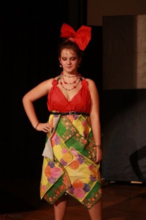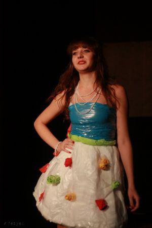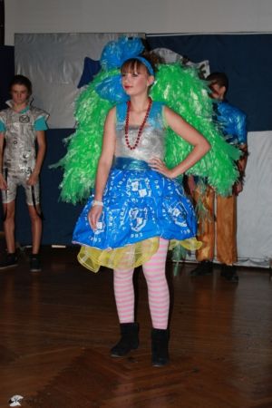 Вбрання учасників дивувало своїм розмаїттям та неординарністю, адже одяг був зроблений із вторинної сировини: поліетилен, диски, парасольки, платівки, картон, фольга – все це використовувалось для створення дивацьких екологічних моделей. Завдяки фантазії учасників було продемонстровано близько 40 еко-костюмів.
