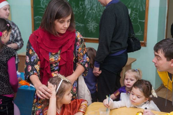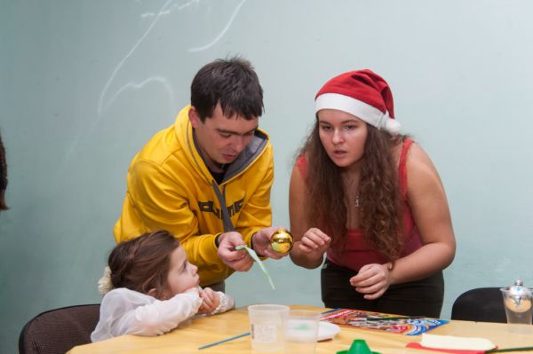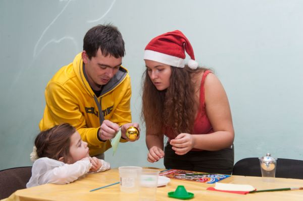 Найцікавіші розваги чекали діток у новорічних студіях, де вони водили хороводи, брали участь в параді новорічних костюмів та власноруч майстрували листівки.