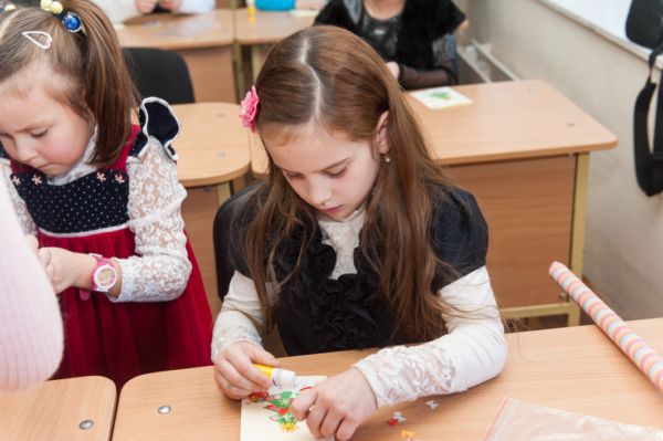 Найцікавіші розваги чекали діток у новорічних студіях, де вони водили хороводи, брали участь в параді новорічних костюмів та власноруч майстрували листівки.