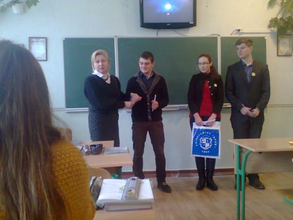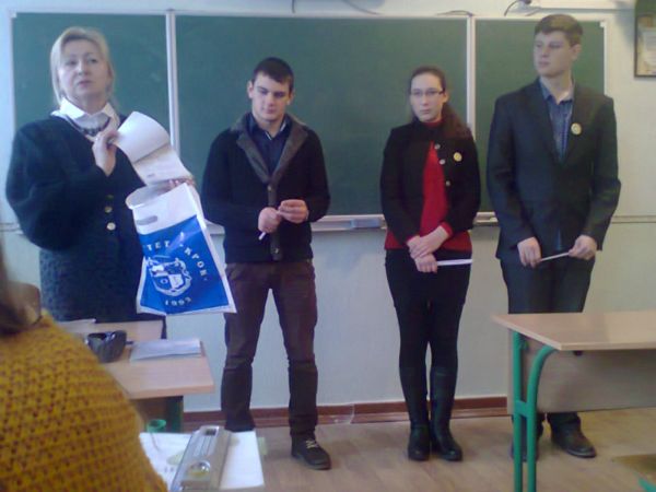 Переможці вікторини «Ваш вибір» у Володарському ліцеї: Бойко Сергій, Горковенко Оксана, Савіцький Ярослав (11-ий клас).