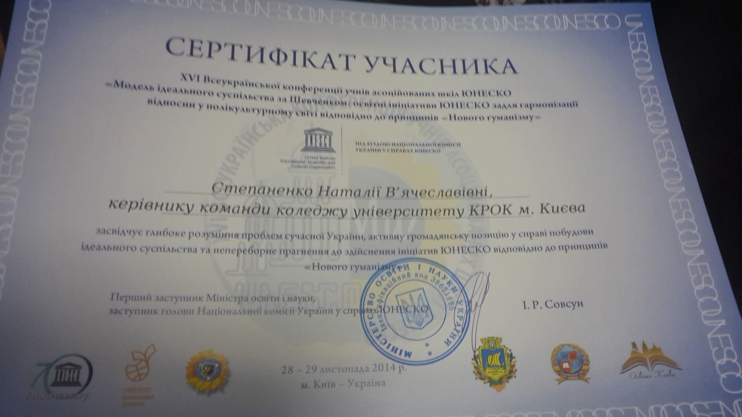 Конференція учнів асоційованих шкіл ЮНЕСКО, 28 листопада 2014 року