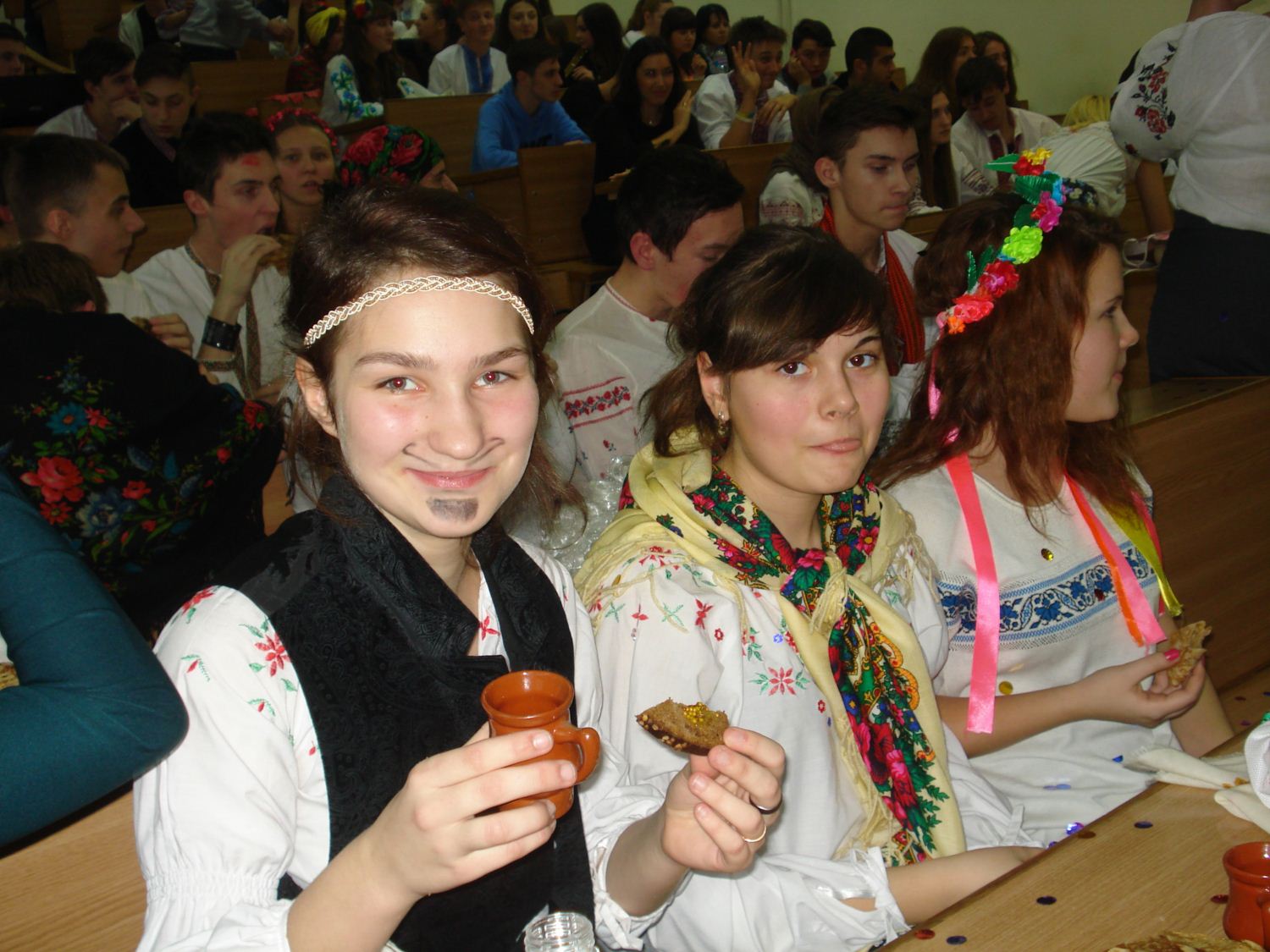 Студенти Коледжу економіки, права та інформаційних технологій відтворювали українські традиції: сватання, ворожіння на Андрія, весілля, гуляння новорічні та проти Купала, святкування Великодня та доповнили це все традиційною українською кухнею.
