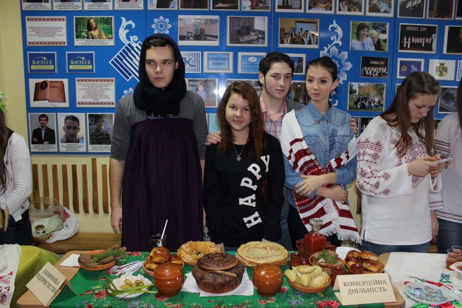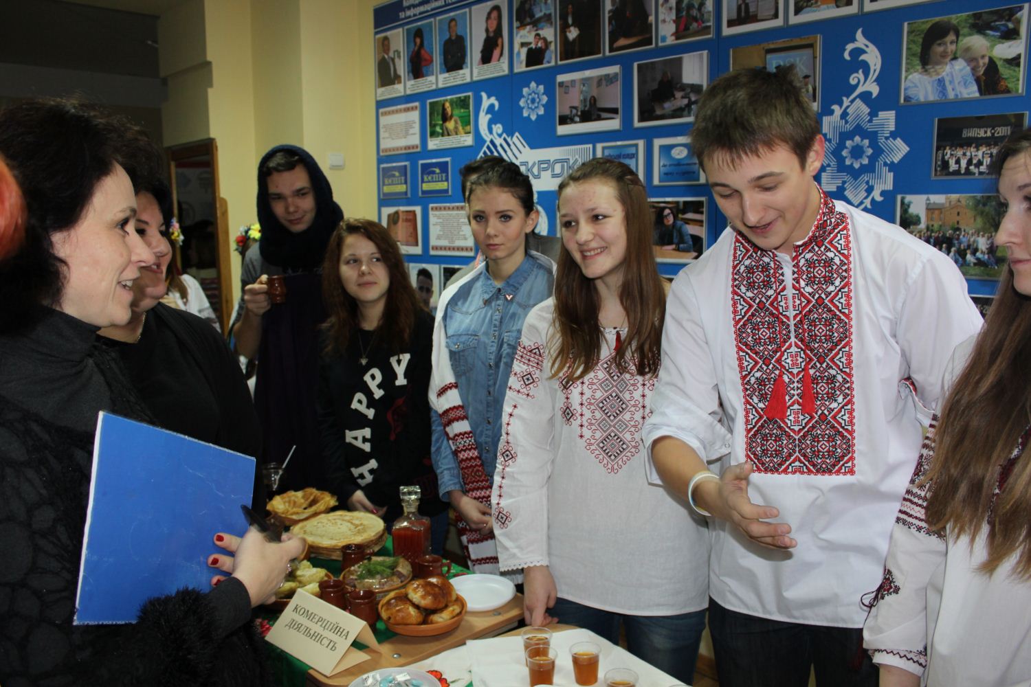 Студенти Коледжу економіки, права та інформаційних технологій відтворювали українські традиції: сватання, ворожіння на Андрія, весілля, гуляння новорічні та проти Купала, святкування Великодня та доповнили це все традиційною українською кухнею.