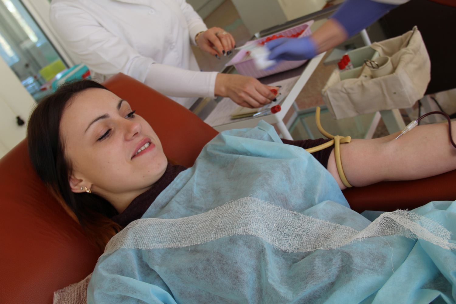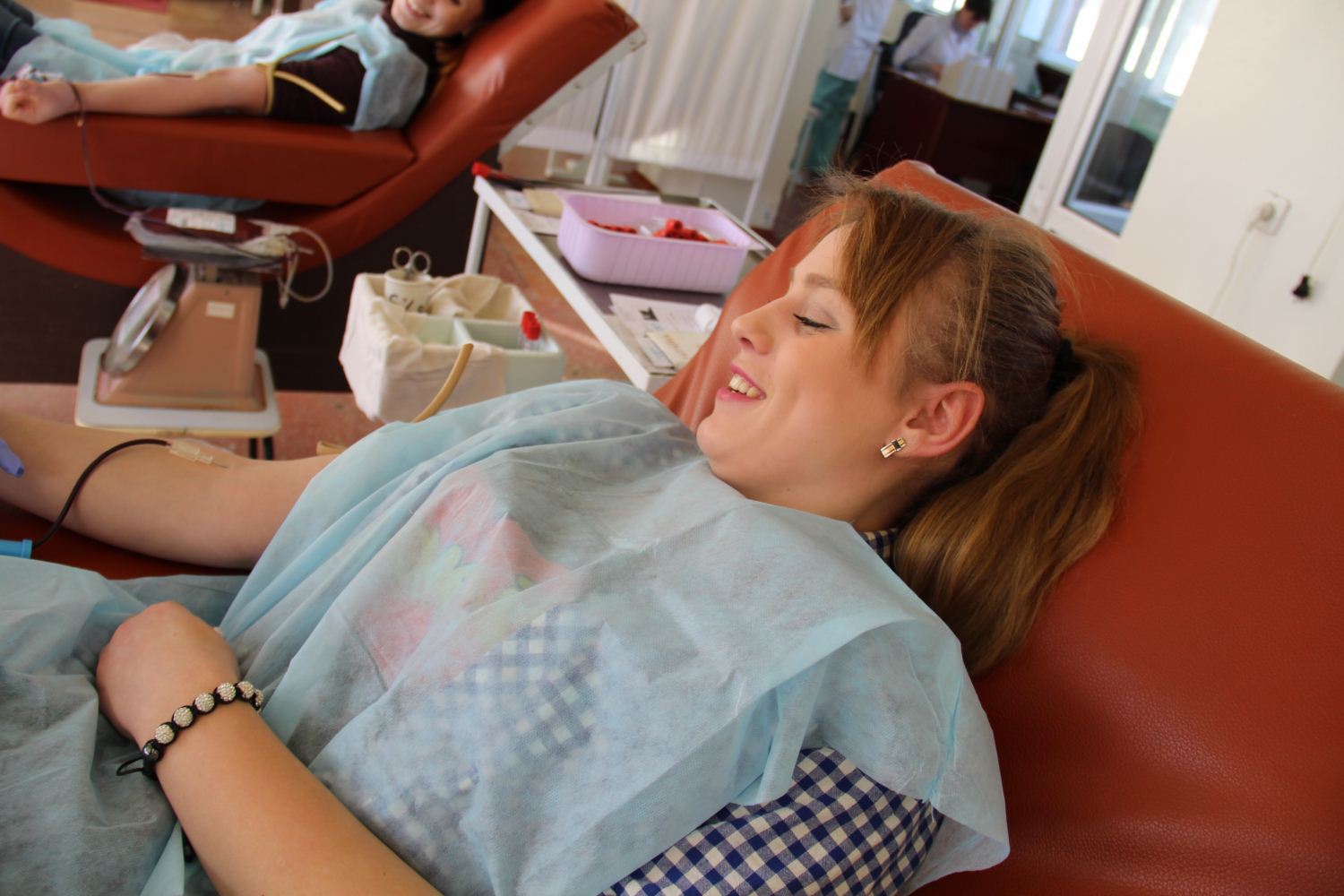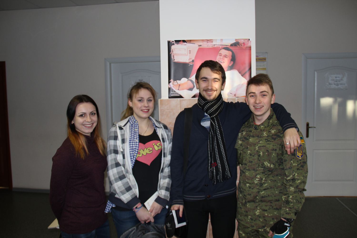 Два студенти «КРОКу» – Надія Заславська (ЮФ) і Наталія Гузій (ФЕП), а також друзі «КРОКівців» Ірина Денисенко та Олександр Михайлюк здали півтора літра крові другої групи в Київському міському центрі крові.